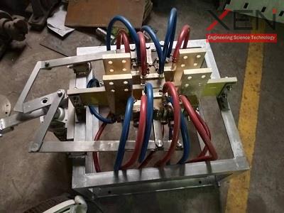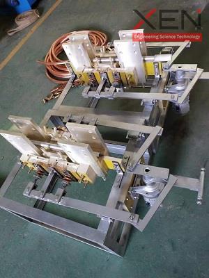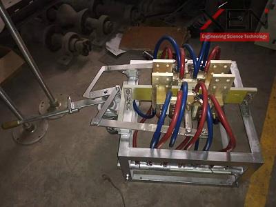 换炉开关是一种用于无芯中频电炉中的电动快速切换开关,主要由静止块、活动块、压力调节机构,传动机构、机架组成,螺栓将静止块、接出铜板和机架等部分构成,它采用循环水冷却,能够实现手动或电动切换,最高长期使用电流可达10000A[可非标定制]。