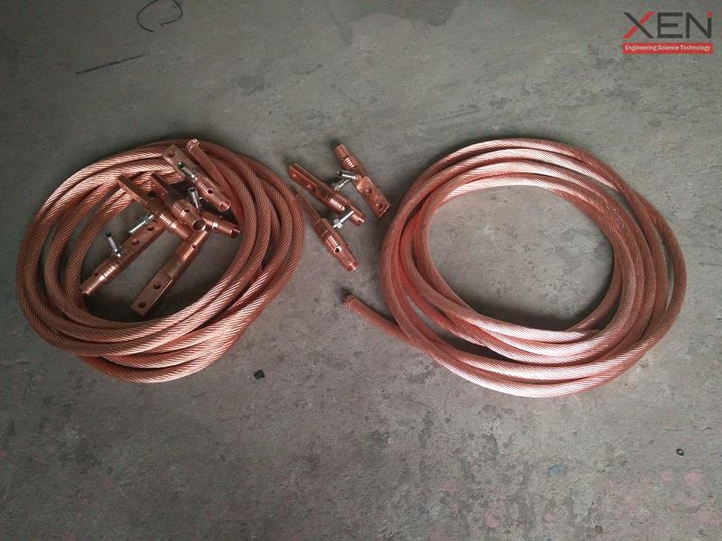 水冷电缆接头:中空通水,用于大电流感应加热设备电容器与负载间,或其他大电流设备的软连接,其主要由电缆头、导线、外套管构成。
